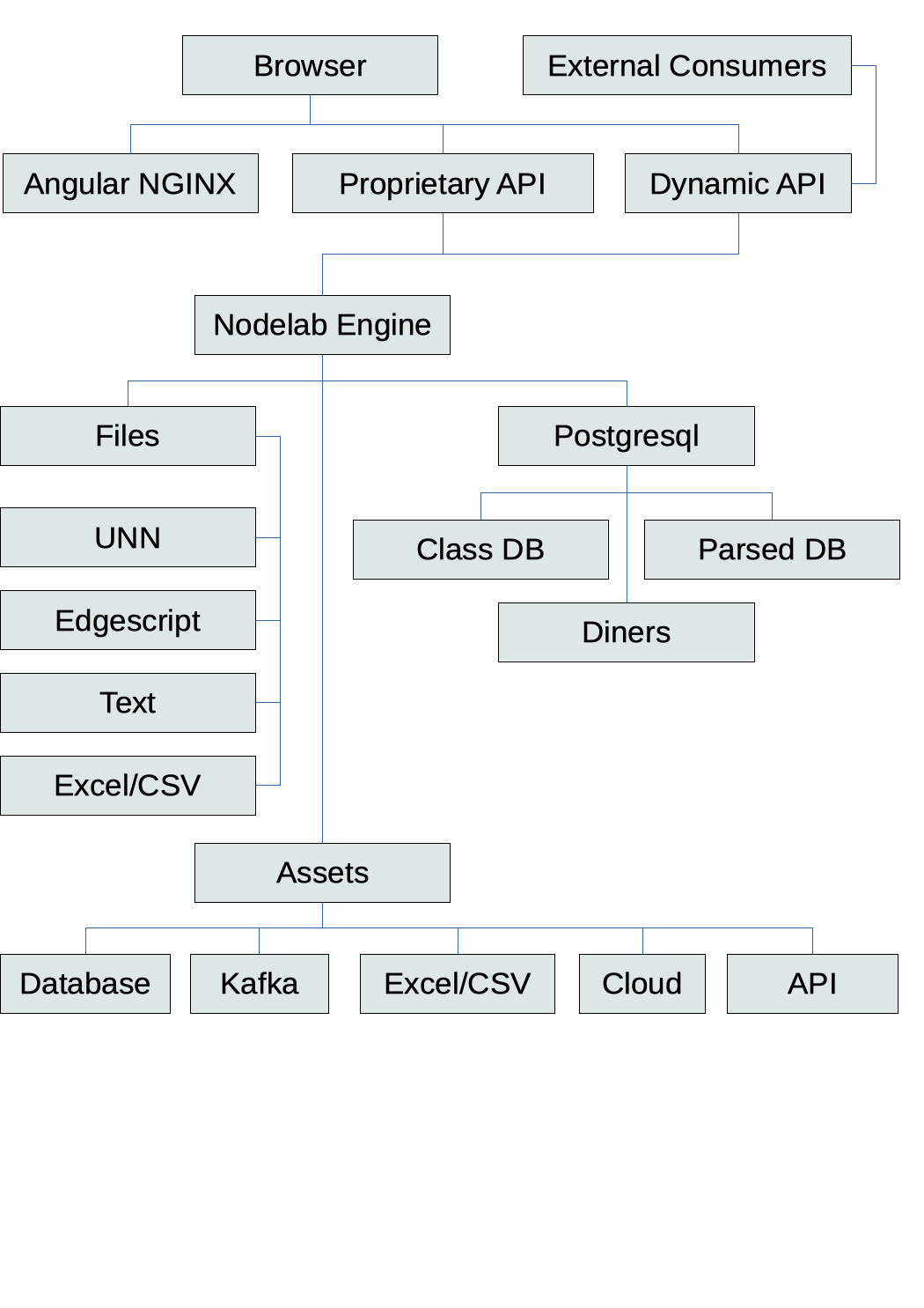 Nodelab uses a container environment, with a backend Java/Spring server, called Nodelab Engine, and a frontend NGINX/Angular server, called Nodelab Control.