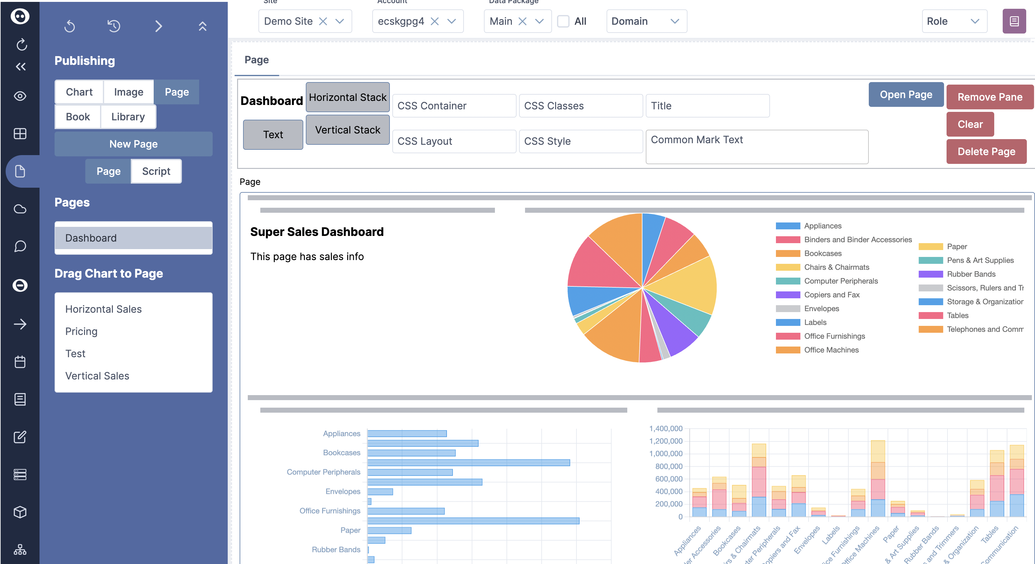 The components can be connected using state references, i.e. clicking on a component may update the content of others.